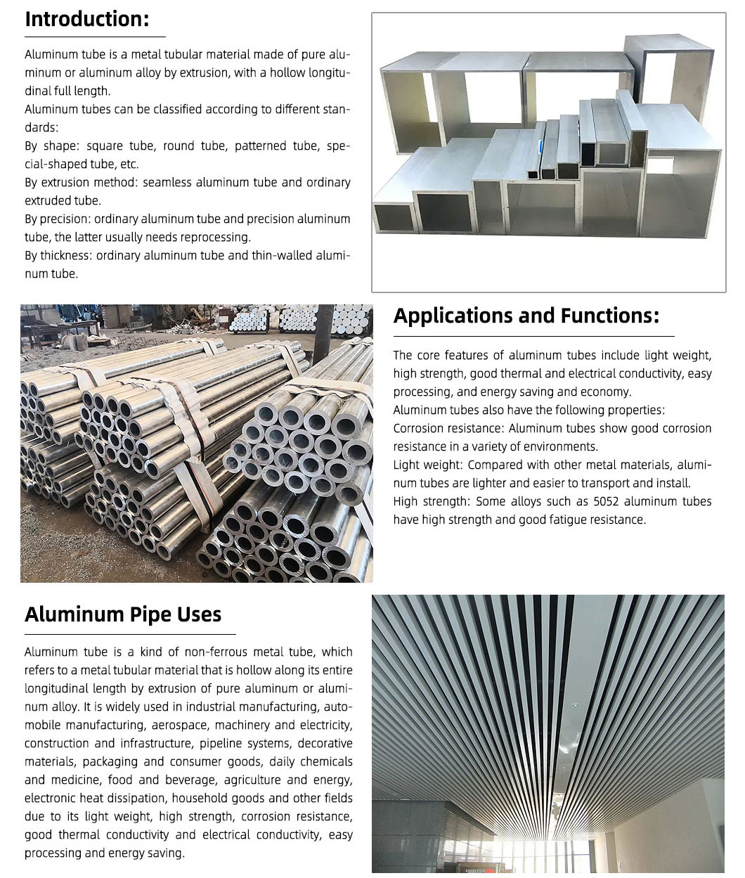 Aluminum tube is a kind of non-ferrous metal tube, which refers to a metal tubular material that is hollow along its entire longitudinal length by extrusion of pure aluminum or aluminum alloy. It is widely used in industrial manufacturing, automobile manufacturing, aerospace, machinery and electricity, construction and infrastructure, pipeline systems, decorative materials, packaging and consumer goods, daily chemicals and medicine, food and beverage, agriculture and energy, e…