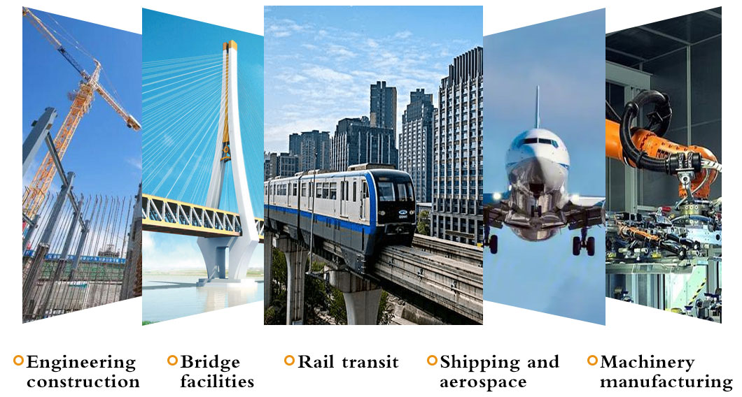 Products are widely used in construction, machinery, coal mining, chemical industry, electric power, railway vehicles, automobile industry, highways, bridges, containers, sports facilities, agricultural machinery, petroleum machinery, prospecting machinery, greenhouse construction and other manufacturing industries