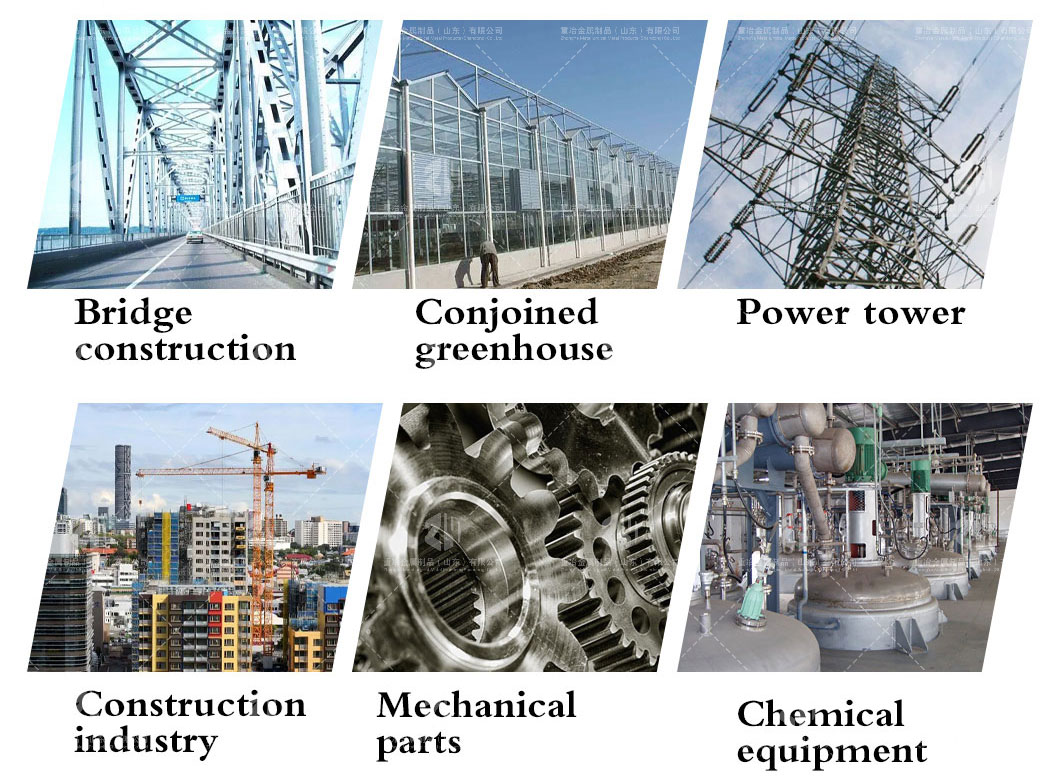 Products are widely used in construction, machinery, coal mining, chemical industry, electric power, railway vehicles, automobile industry, highways, bridges, containers, sports facilities, agricultural machinery, petroleum machinery, prospecting machinery, greenhouse construction and other manufacturing industries
