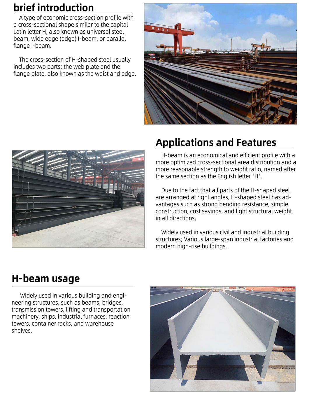 Carbon steel profiles mainly include angle steel, channel steel, H-shaped steel, I-beam, flat steel and other categories. They are widely used, mainly including the following aspects: building structure, bridge structure, steel structure, protective facilities, machinery manufacturing, machine parts, vehicle manufacturing, pipeline engineering, transmission lines, power generation equipment, shipbuilding, furniture manufacturing, etc.