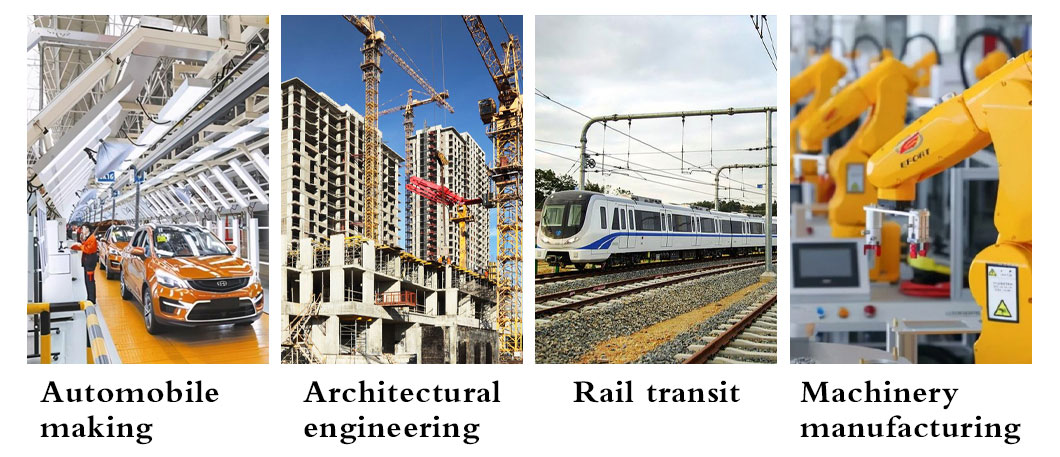 Products are widely used in construction, machinery, coal mining, chemical industry, electric power, railway vehicles, automobile industry, highways, bridges, containers, sports facilities, agricultural machinery, petroleum machinery, prospecting machinery, greenhouse construction and other manufacturing industries