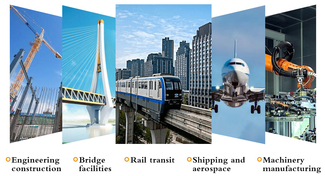 Products are widely used in construction, machinery, coal mining, chemical industry, electric power, railway vehicles, automobile industry, highways, bridges, containers, sports facilities, agricultural machinery, petroleum machinery, prospecting machinery, greenhouse construction and other manufacturing industries